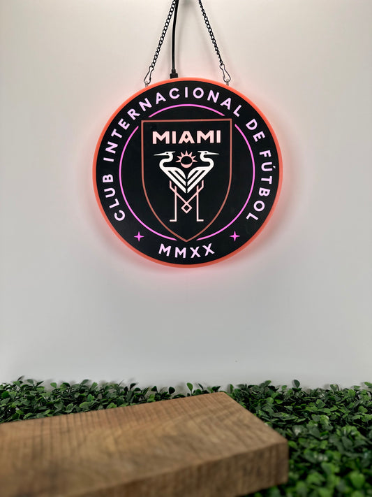 SaleInter Miami CF 3D Printed LED Sign – Glowing Pink USB-C Wall Decor