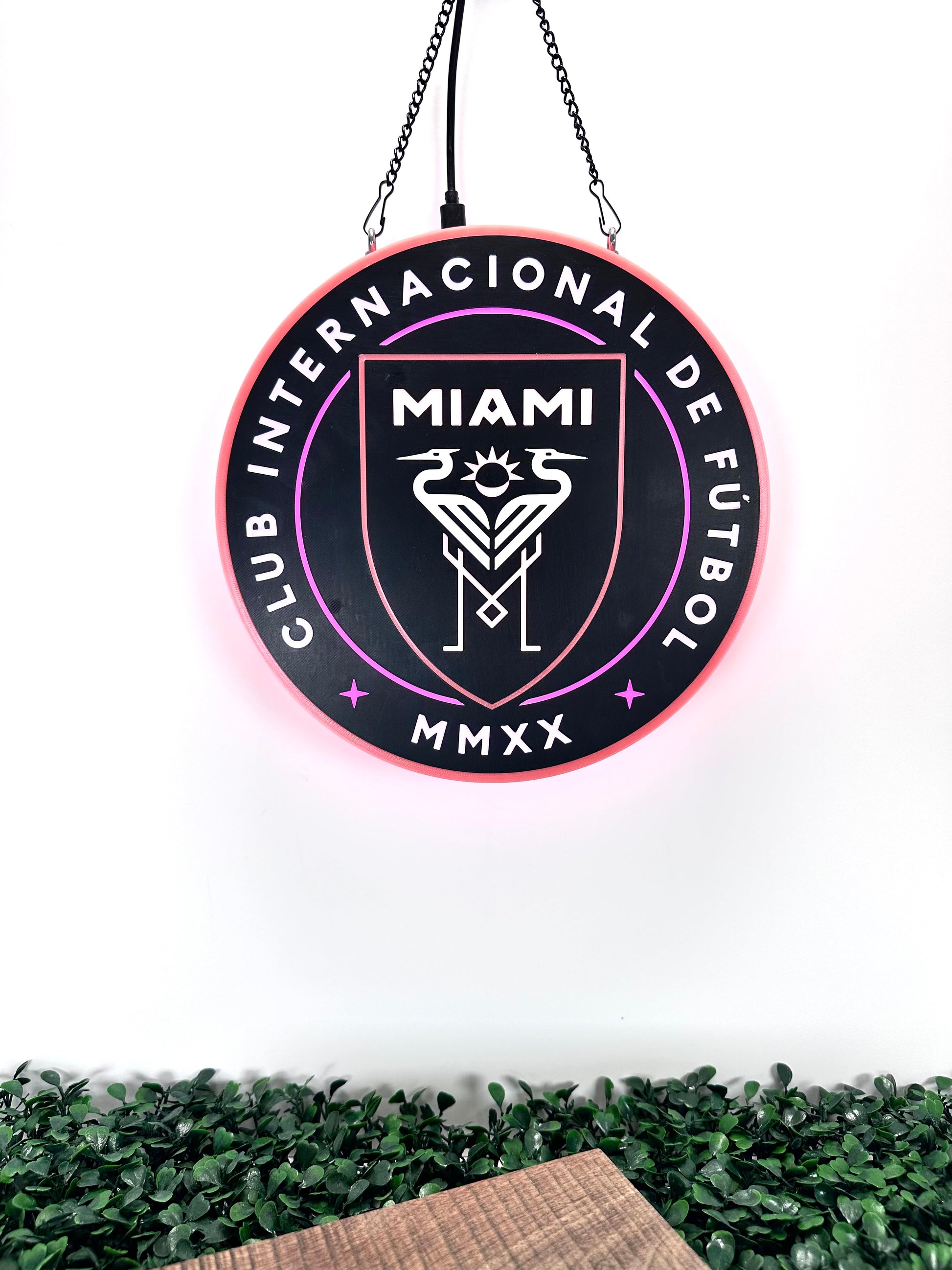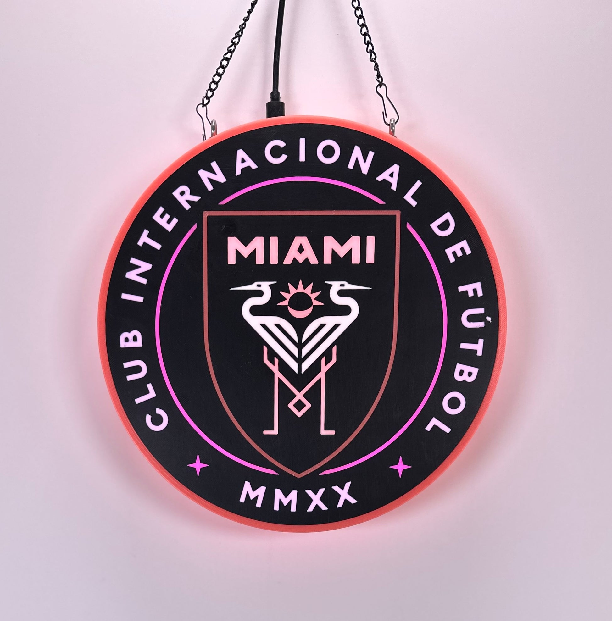 Inter Miami CF 3D Printed LED Sign – Glowing Pink USB-C Wall Decor
